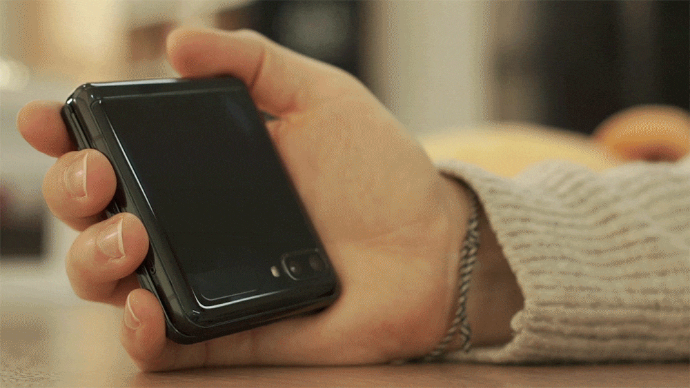 We’ve all had times when we have struggled to deal with multiple tasks on our phones with just one hand. The Galaxy Z Flip comes with a nifty feature that lets you comfortably reach everything on the main display when only one of your hands is free. By double tapping on the home button or swiping down in the center of the bottom edge, One-handed mode temporarily scales down the display size for easier control.