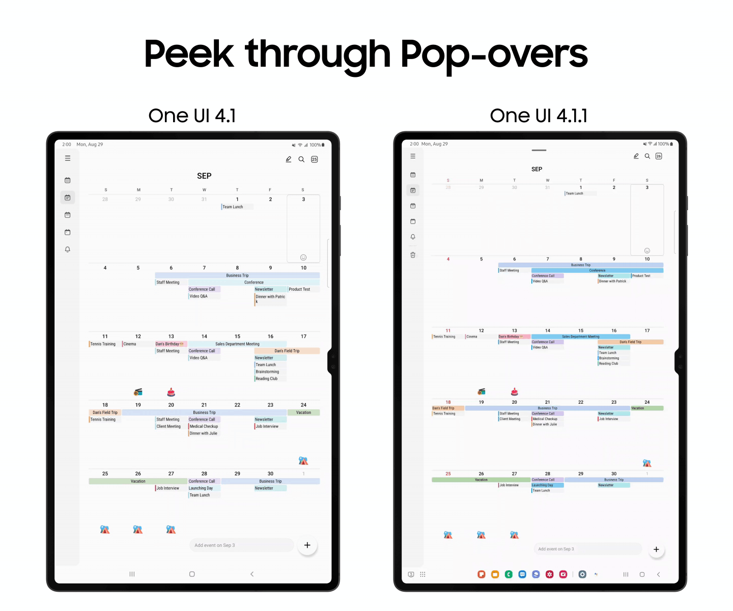 3 Peek-through pop-over options available with One UI 4.1.1 update.
