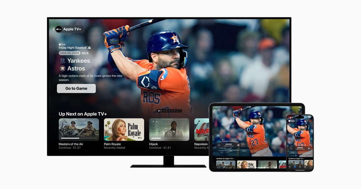 Apple and Major League Baseball (MLB) announced that “Friday Night Baseball,” a weekly doubleheader, will be available to Apple TV+ subscribers on Fridays throughout the 2024 regular season. Fans in 60 countries and regions can enjoy two marquee matchups over 26 weeks with no local broadcast restrictions. “Friday Night Baseball” will begin on opening weekend of the 2024 season — Friday, March 29 — with some of the game’s biggest stars taking center stage. Coverage begins at 7:30 p.m. ET with Juan Soto, Aaron Judge, and the new-look New York Yankees lineup taking on the Houston Astros. And beginning at 9:30 p.m. ET, Shohei Ohtani, Mookie Betts, and the Los Angeles Dodgers will host the St. Louis Cardinals.