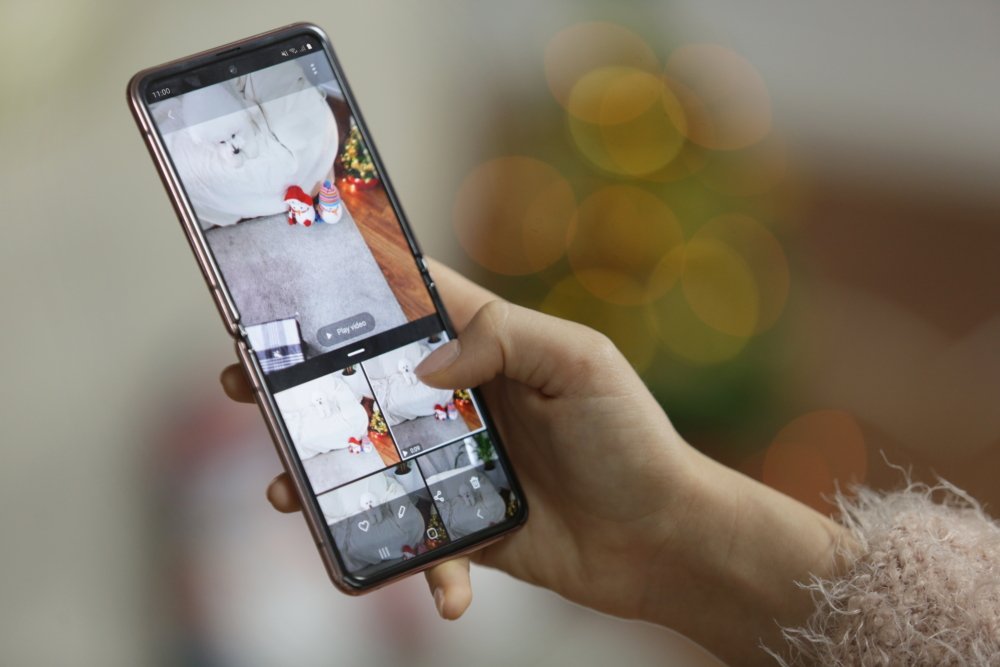 In order to easily snap adorable shots of you and your favorite companion, you can harness the Z Flip’s folding mechanism and Flex mode to easily capture shots on a timer without the need for any accessories. Designed specifically for the Z Flip’s distinctive form factor, Flex mode splits the display evenly into two 4-inch screens when your device is freestanding so that you don’t have to compromise when capturing.