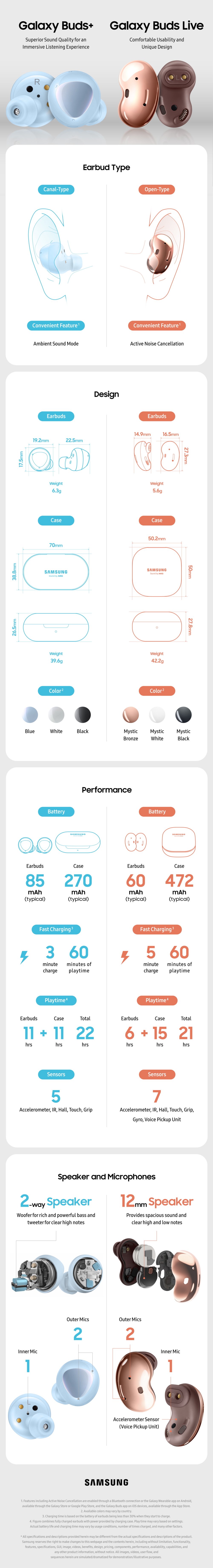 Check out the infographic below to learn more about how the Galaxy Buds Live compare to the Galaxy Buds+.