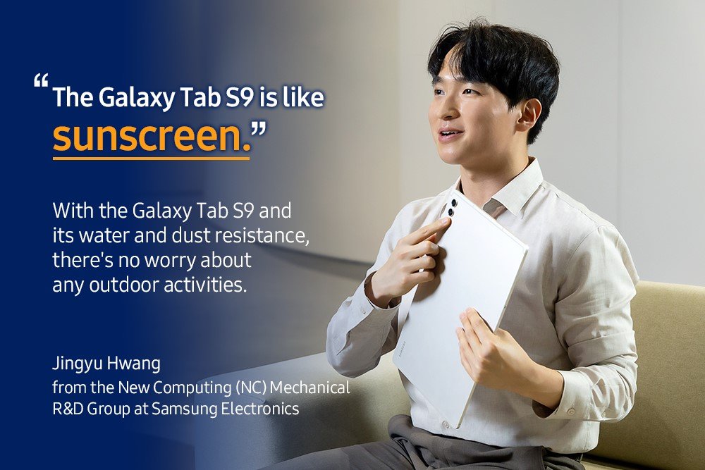 “Since we didn’t have appropriate water-resistant testing equipment for the large 14.6-inch screen of the Galaxy Tab S9 Ultra, we worked with relevant departments to manufacture new equipment to test the product,” said Hwang.