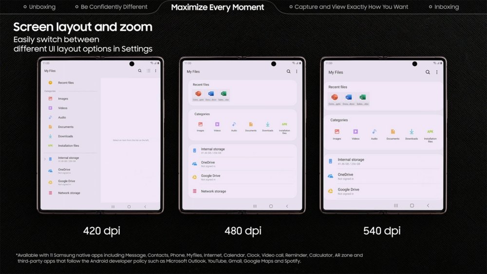With the ability to customize the size of your text and icons, the Galaxy Z Fold2 has a layout for every Galaxy user. Whether you’re looking to maximize your device for productivity or entertainment, you can optimize your mobile experience with three different UI layouts and text size options: See More, See Bigger, and See Even Bigger. See More takes full advantage of the Galaxy Z Fold2’s large display, while See Bigger and See Even Bigger offer a more traditional phone UI experience that makes reading your screen easier on the eyes. Tweak the layout and view to optimize your experience with your most frequently used apps for multitasking that is completely tailored to your needs.