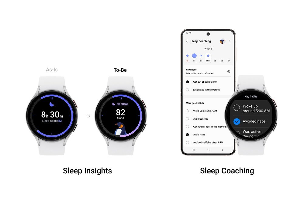 The new Sleep Insights UI prominently displays the user’s sleep score to provide a clearer snapshot of the prior night’s rest, followed by related metrics like sleep phases, snoring hours and blood oxygen levels. In addition, Sleep Coaching — tailored around eight different sleep types2 — also becomes fully accessible directly on Galaxy Watch as well as a paired phone, making for a more convenient and motivational way for users to track their habits anytime, anywhere.
