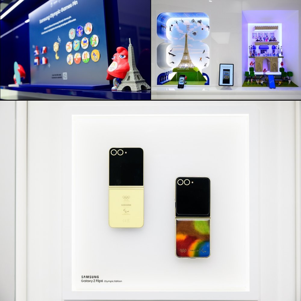 Samsung turned heads with a display of the newly announced Galaxy Z Flip6 Olympic Edition —boasting a striking yellow colorway adorned with the Olympic rings, Paralympic agitos and Samsung logo in gold and exclusively designed for the nearly 17,000 athletes competing at the upcoming Olympic and Paralympic Games Paris 2024.