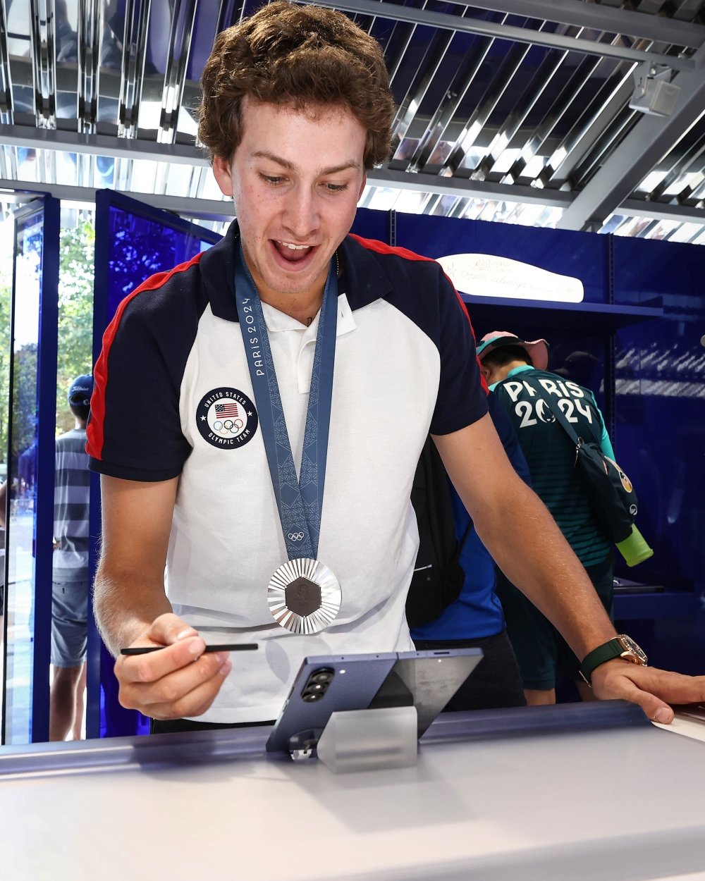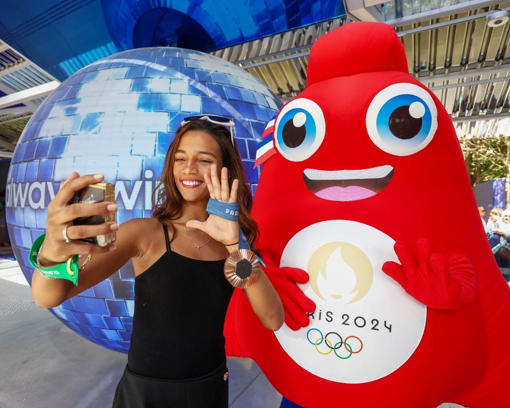 Fresh from their medal-winning performances at the Olympic Games Paris 2024, Team Samsung Galaxy athletes Rayssa Leal (Skateboarding, Brazil) and Jagger Eaton (Skateboarding, USA) surprised fans at the Olympic™ rendezvous @ Samsung | Square Marigny. Fans gathered as the athletes explored the space, posed for pictures and left their mark with a signed board and helmet — now on display at the space throughout Paris 2024.