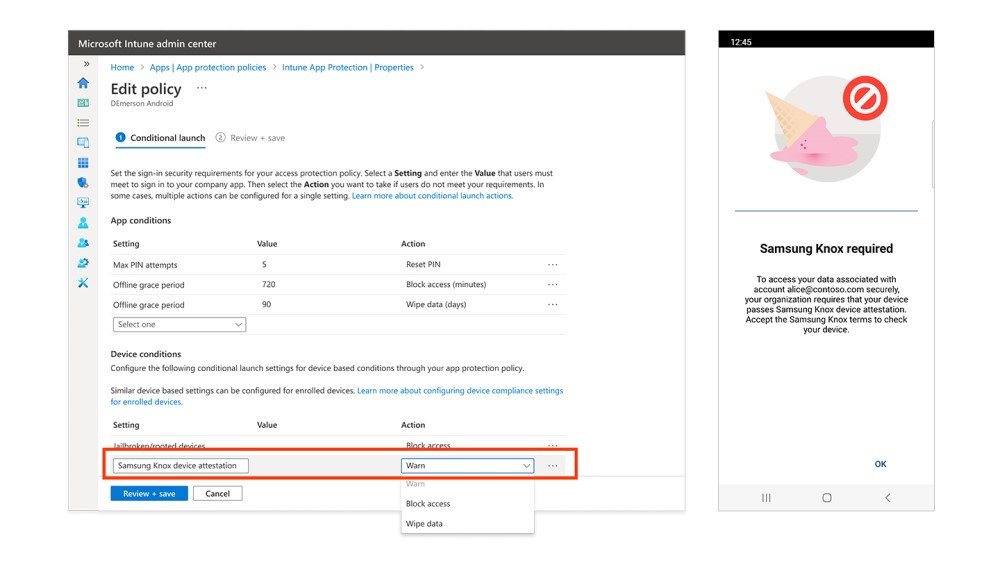 5 Mobile hardware-backed device attestation, enabled by Samsung Knox hardware and Microsoft Intune app policies, is compatible with both Mobile Device Management (MDM) and Mobile Application Management (MAM) systems, for use on company-owned devices as well as personally-owned devices.