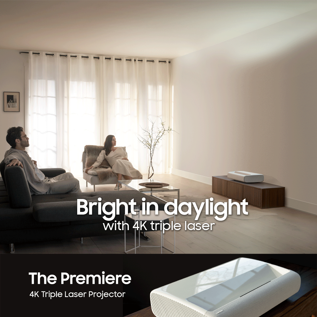 Outstanding picture, sound and usability, all in an attractive package that sets off your room – Samsung delivers it all in The Premiere. And now, with Samsung’s all-in-one projector offering all of the features and usability of the company’s acclaimed Smart TV platform, users are ready to bring cinema-like viewing to life without ever having to leave home.