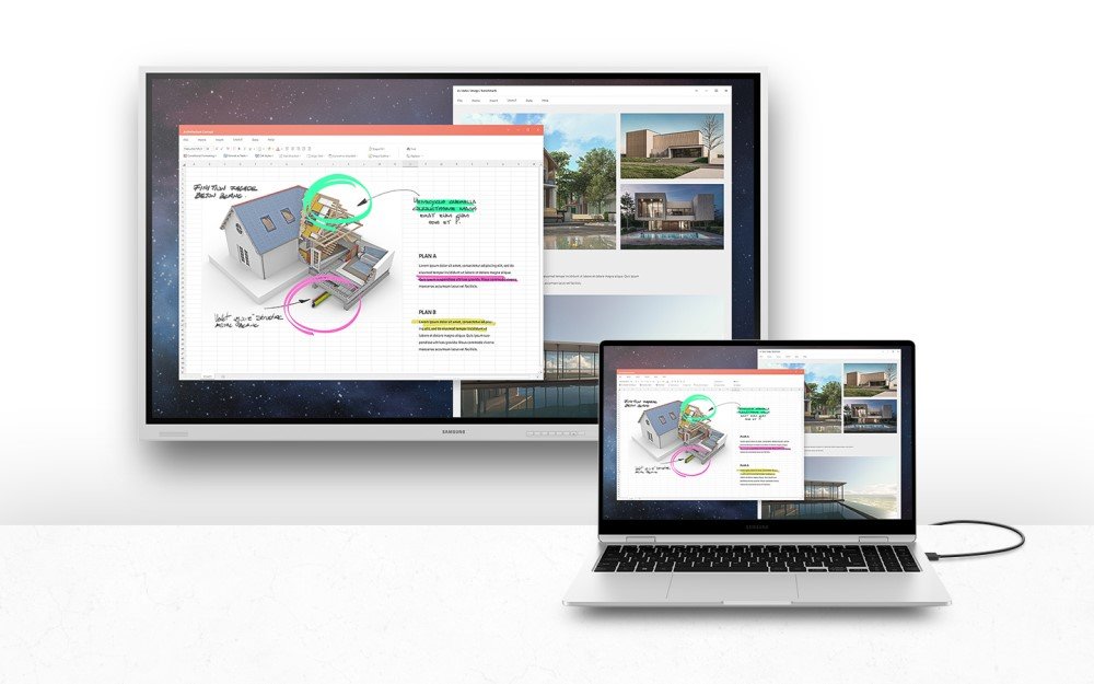 Originally available on the Samsung Flip (Model name: WMB, WMA, WMR), the Samsung Whiteboard App will also be compatible with the WAC model. The software solution helps educators connect to Windows OS devices, so that even after connecting a PC to the display, seamless writing on top of the content on the PC can be experienced in real-time, creating a dynamic classroom experience. In addition, it is easy to store and share content and documents, as well as annotate on top of whatever is being displayed in real-time, even during a video conference.