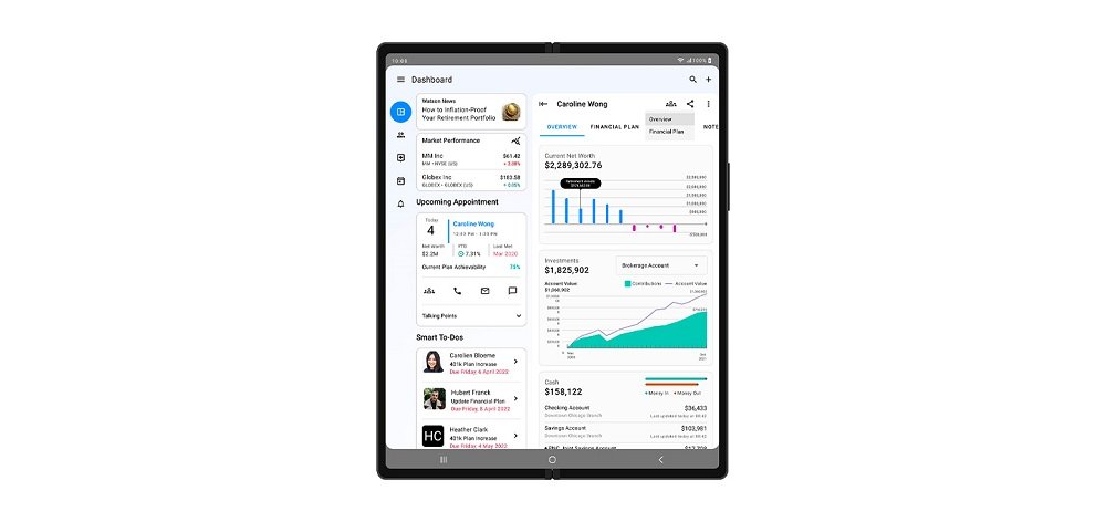 As companies shift towards work-from-anywhere policies, they are looking to technology for new ways to maximize productivity. Foldables have particularly attracted the financial services industry, where 74%3 of a sample group of financial advisors say staying connected via mobile apps is important or critical.