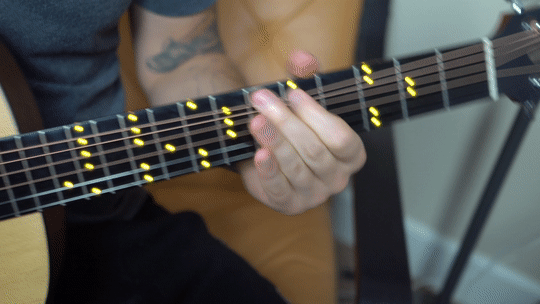 The way the system works, being the guitar itself and an accompanying app, is pretty easy to jump into. You turn the guitar on, which powers up the neck’s builtin LED system, then pair it to an app that runs on your phone. From here, you can do all sorts of things to help you learn, such as see chords visualized on your neck and play along with songs in a gaming mode complete with leaderboards. As a use case example, let’s say you want to learn a G chord. Inside the app you can go into the Chord Chart tool, tap on G, and then the guitar’s neck will light up the position of the G chord. Same goes for any other chord you can think of.