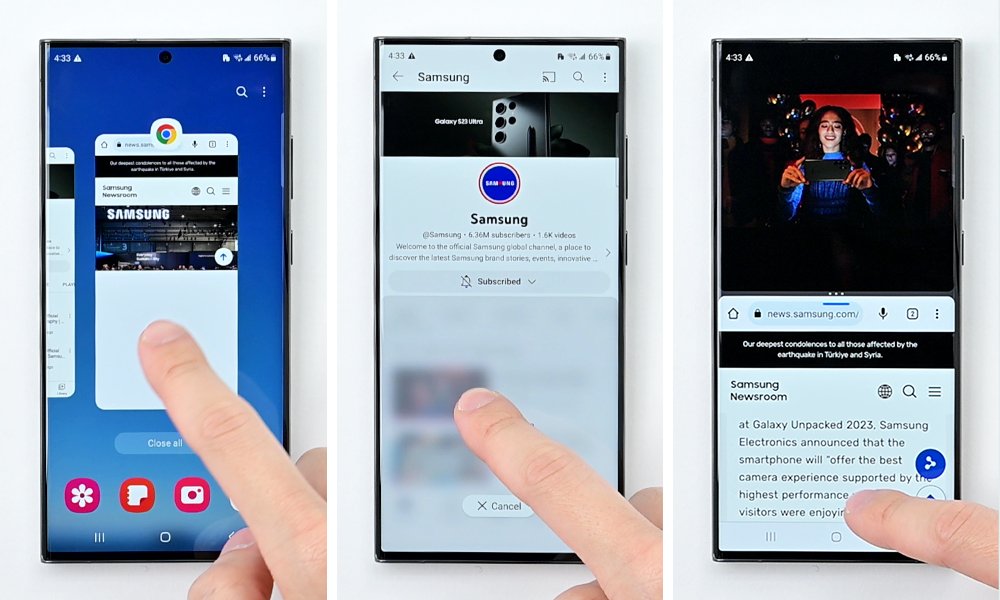 ▲ With the Galaxy S23 Ultra, you can experience the enhanced multitasking functionality. Through the Multi-window function, you can run two apps simultaneously or open a pop-up window as you can on a laptop to work quickly and efficiently.