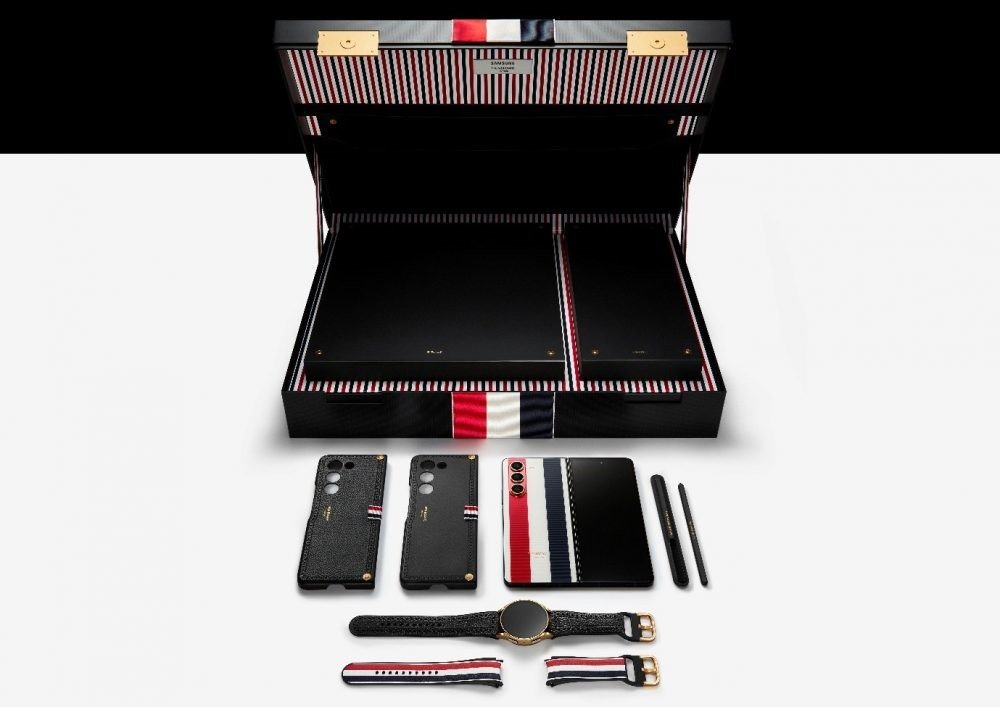 ▲ The Galaxy Z Fold5 Thom Browne Edition package includes the Galaxy Z Fold5 and S Pen, Galaxy Watch6 (40mm model) as well as special phone cases and S Pen pouch and watch strap accessories.