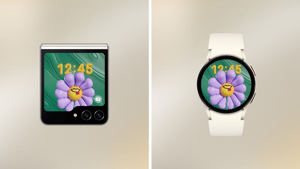 With more space, simple layouts and bold objects make a stronger statement. The Galaxy Z Flip5 provides ample space on the Flex Window to empower you to unleash your creativity. You can also match the style of the Flex Window to your Galaxy Watch6 watch face, coordinating a look across your Galaxy devices.