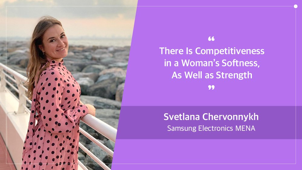 “I believe that women have secret superpowers thanks to their natural femininity and softness, something that is actually incredibly useful in work environments,” said Chervonnykh. “My immediate boss is the only female leader in the Samsung MENA CS team, and she sets a great example. Among those I work with, regardless of gender, I find everyone very cooperative in fostering a comfortable environment in which to work.”