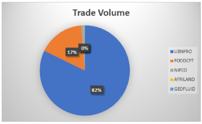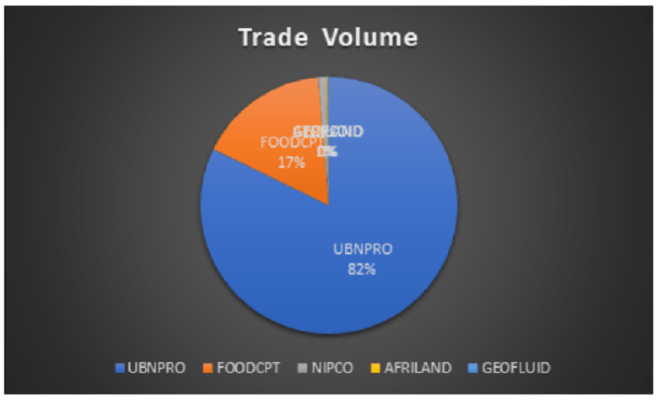 UBN Properties Plc also led the chart, registering 10,000,000 units, followed by Food Concept Plc with 2,000,000 units. Also, in the top five position is NIPCO Plc with 125,091 units, while Afriland Plc recorded 23,650 units. Geo-Fluids Plc made it to the elite list with 15,000 units.