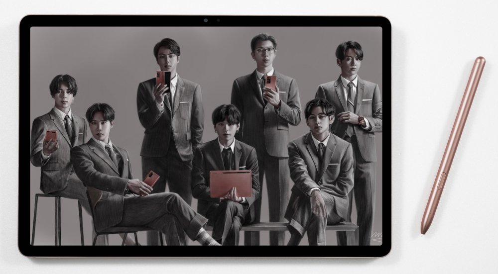 To check it for herself, digital artist Young-eun Lee (a.k.a. mingmiraclegreen) tried drawing a picture with the S Pen on the Galaxy Tab S7+. Having previously drawn many portraits on tablets, she drew world-renowned boy band BTS (who have collaborated with Samsung a number of times) by using the Tracing feature that allows even beginners to create artworks by drawing on top of images placed beneath the canvas. Take a look at the video below to see, step by step, how a blank canvas on the Galaxy Tab S7+ is transformed into a work of art.