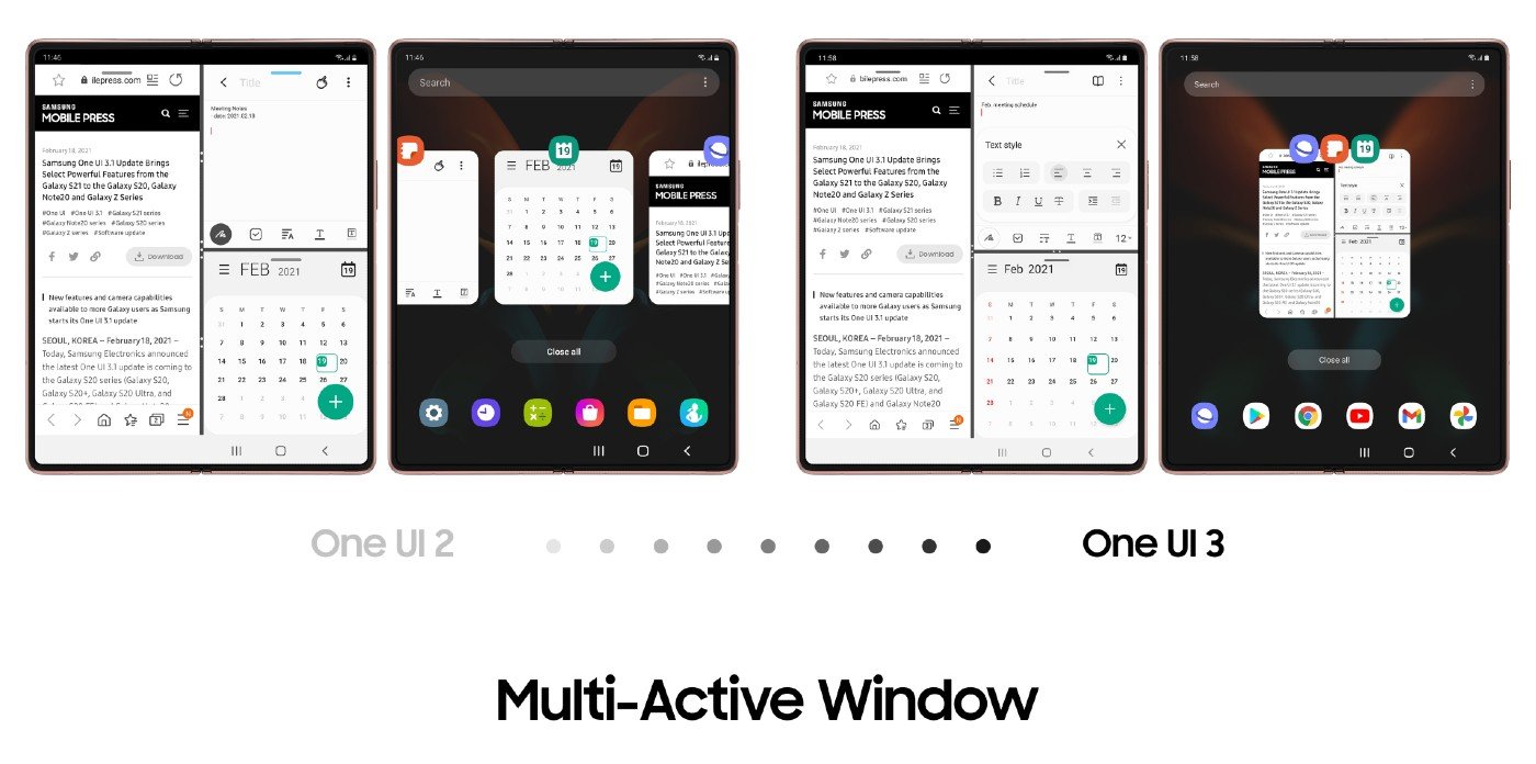 Samsung details an enhanced multi-active window UI (shown above in the header image), which is now accessible directly from notifications in the Quick Panel. Additionally, the camera software has been tweaked. Now, when shooting in Flex mode, the position of the controls can be adjusted for “greater comfort.”